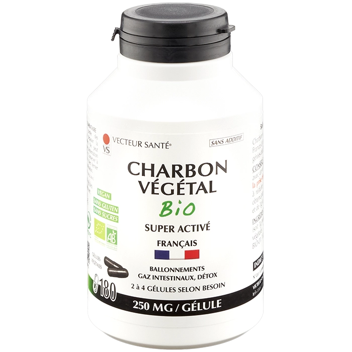CHARBON BIO FRANÇAIS 180 Charbon Bio en gélules. Idéal pour adsorber les gaz intestinaux et limiter les ballonnements. Informations