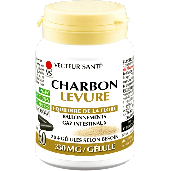 CHARBON LEVURE Synergie idéale pour assainir et rééquilibrer naturellement la flore intestinale. Informations