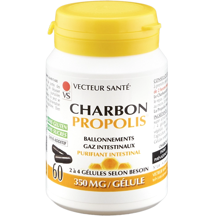 CHARBON PROPOLIS Synergie idéale pour favoriser l’épuration digestive et intestinale. Limite les ballonnements et gaz intestinaux. Informations