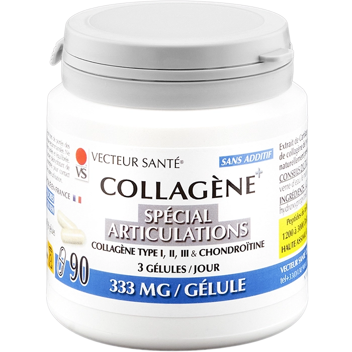 COLLAGÈNE+ SPÉCIAL ARTICULATIONS Collagène types I, II, III super hydrolysé & chondroïtine – soutien complet pour la mobilité et les articulations. Informations