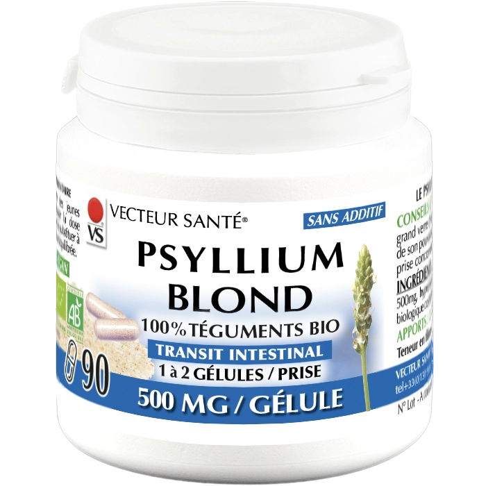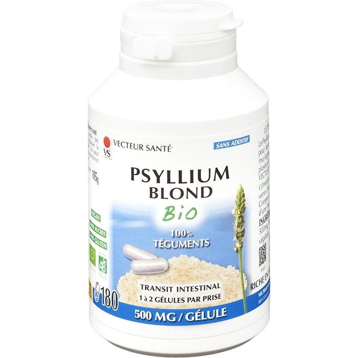PSYLLIUM BLOND BIO 180 GÉLULES Psyllium blond bio 500 mg – coupe-faim naturel, fibres 80 % – soutien du transit et de la cholestérolémie. Informations