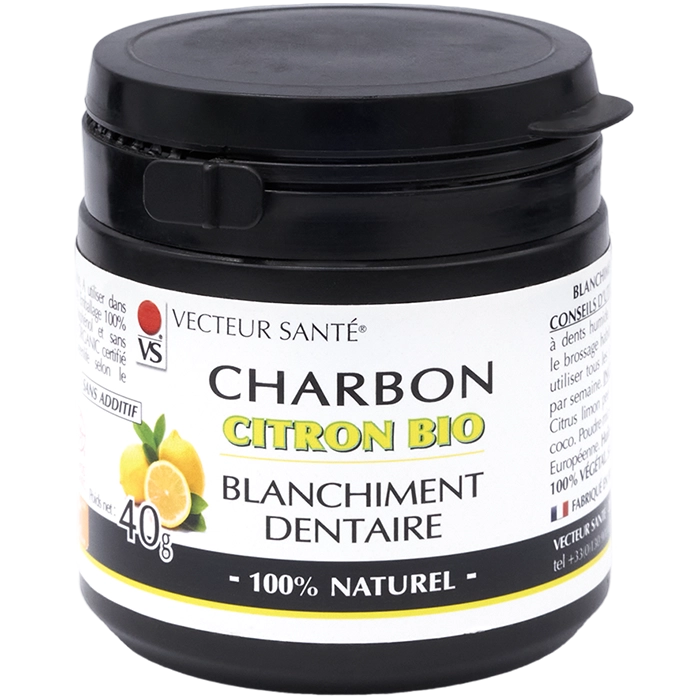 CHARBON VÉGÉTAL BLANCHIMENT DENTAIRE CITRON BIO Charbon dentaire végétal super micronisé – blancheur, hygiène buccale, haleine fraîche – Citron Bio – 100 % naturel, sans... Informations