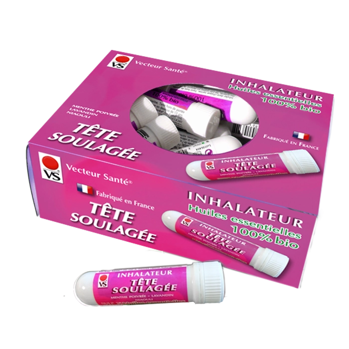 INHALATEUR BIO TÊTE SOULAGÉE Inhalateur bio Tête Soulagée – huiles essentielles de menthe, lavandin et niaouli – tensions apaisées, esprit allégé. Informations