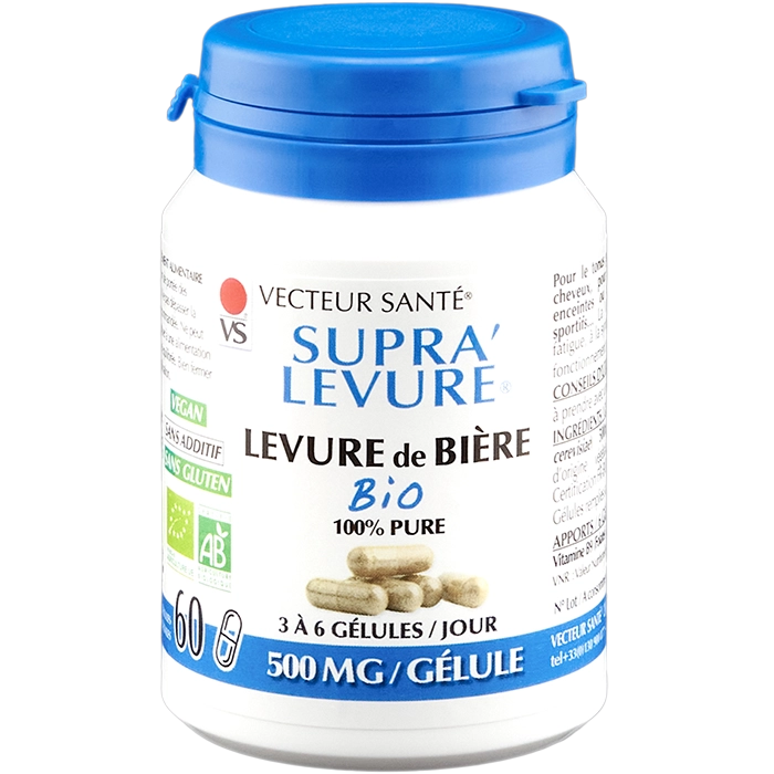 SUPRA’LEVURE® LEVURE DE BIÈRE BIO Levure de bière bio en gélules – source naturelle de vitamines B – tonus, vitalité et beauté de la peau. Informations