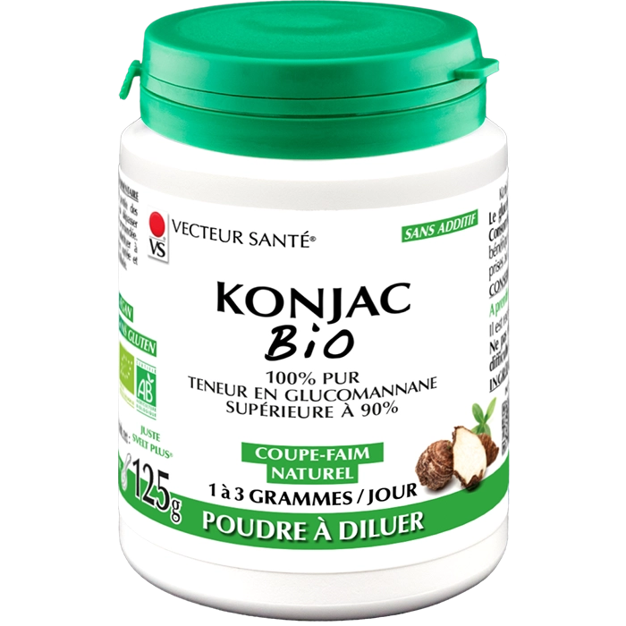 KONJAC BIO POUDRE COUPE-FAIM NATUREL Konjac Bio Poudre – coupe-faim naturel à base de glucomannane – satiété, digestion et perte de poids. Informations