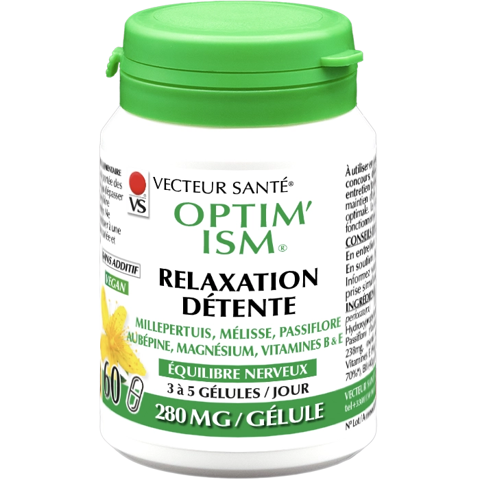 OPTIM’ISM® RELAXATION DÉTENTE Optim’Ism – millepertuis, mélisse, magnésium, vitamines B – soutien naturel du moral, de la détente et de l’équilibre émotionnel. Informations