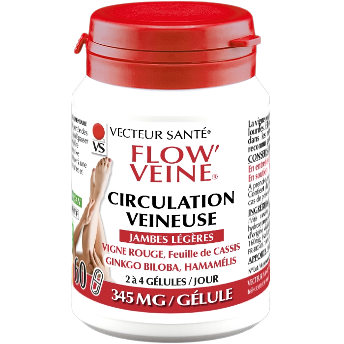 FLOW’VEINE® GÉLULES CIRCULATION VEINEUSE FLOW’Veine Gélules – 5 plantes bio – jambes légères, confort circulatoire et retour veineux renforcé. Informations