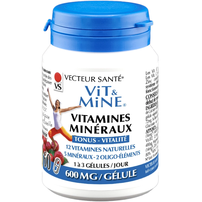 VIT&MINE® VITAMINES ET MINÉRAUX Vit&Mine – 12 vitamines naturelles, 5 minéraux, 2 oligo-éléments – énergie, immunité, système nerveux. Informations
