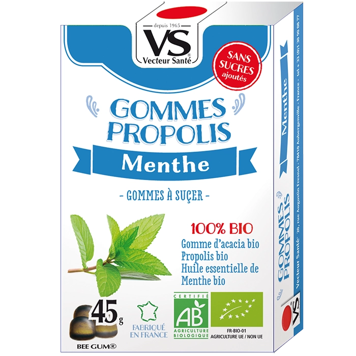 GOMMES BIO PROPOLIS MENTHE Gommes à la propolis et menthe bio – sans sucres ajoutés – gorge irritée, haleine fraîche et bien-être hivernal. Informations