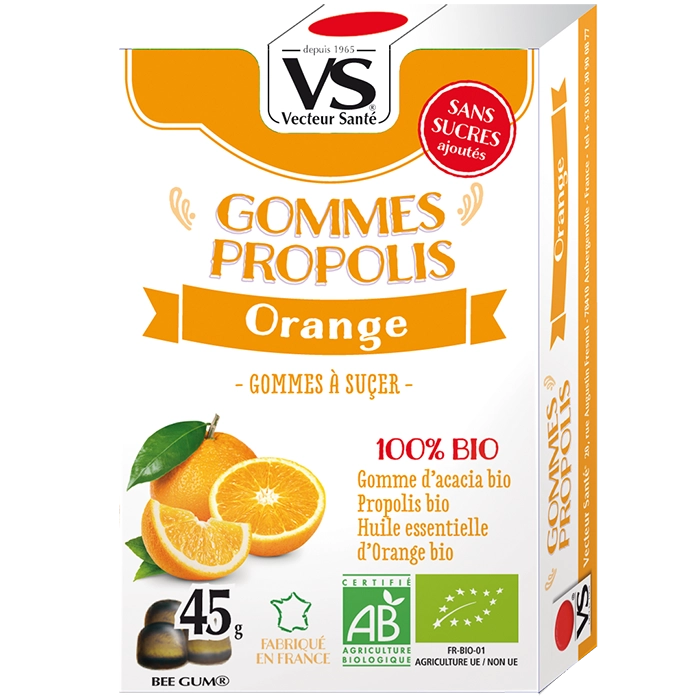 GOMMES BIO PROPOLIS ORANGE Gommes à la propolis et orange bio – sans sucres ajoutés – gorge irritée, haleine fraîche et bien-être hivernal. Informations