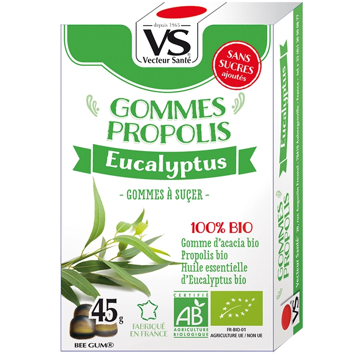 GOMMES BIO PROPOLIS EUCALYPTUS Gommes à la propolis et eucalyptus bio – sans sucres ajoutés – gorge irritée, haleine fraîche et bien-être hivernal. Informations