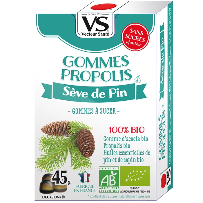 GOMMES BIO PROPOLIS SÈVE DE PIN Gommes à la propolis et sève de pin bio – sans sucres ajoutés – gorge irritée, haleine fraîche et bien-être hivernal. Informations