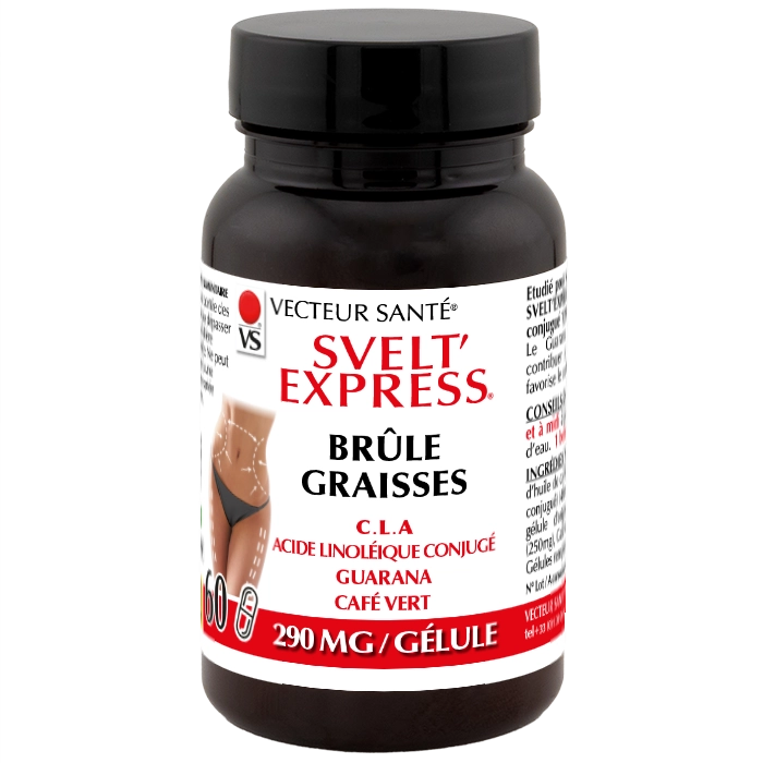 SVELT’EXPRESS® BRÛLE GRAISSES Svelt’Express Brûle Graisses – C.L.A, guarana et café vert – réduction des graisses localisées et soutien de l’énergie. Informations